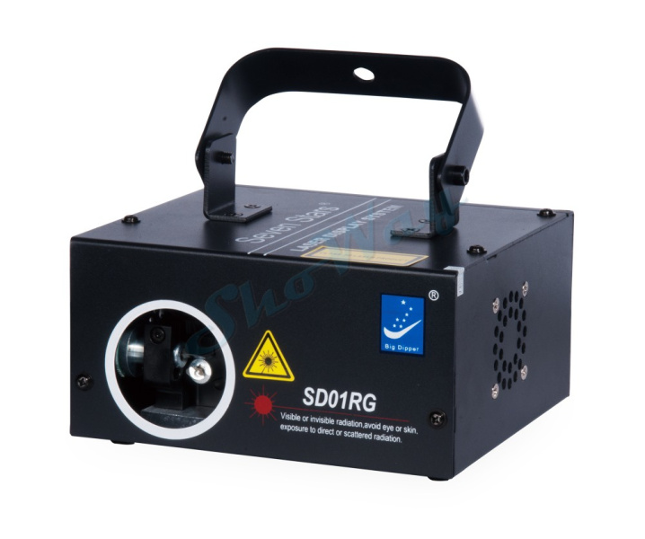 Следующая модель Big Dipper SD01RG, является аппаратурой высшего качества, и предназначена она в основном для мастеров своего дела. Сердцем проектора служат 2 лазера, работающие в RG спектрах. С помощью данной установки можно спроецировать изображение практически на любую плоскость, на которую упадет его луч.