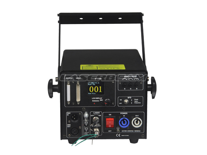 Профессиональный анимационный лазерный проектор PartyMaker AL08RGB в компактном корпусе с выходной мощностью 8000 мВт отлично подойдет для рекламных целей и для профессионального лазерного шоу на больших площадках. Яркость проектора эквивалентна 10 Вт проекторам, построенным по старым технологиям (красный цвет 650 нм). В этом проекторе есть поддержка карт памяти SD и графический LCD дисплей. Отличительной особенностью этого проектора является то, что он построен полностью на лазерных диодах. Это дает преимущество в надежности, сроке службы и температуре использования. Использование зеленого лазерного диода 525 нм расширило диапазон температур работы этого лазерного проектора от -30 до +40 градусов, что очень немаловажно в различных инсталляциях. В этом лазере используется аналоговая модуляция цвета, что позволяет плавно менять яркость и сочетание цветов. Высокоскоростные сканнеры 40k дают возможность выводить графические объекты высокой сложности без сильного мерцания. Наличие считывателя карт памяти превращает этот проектор в полностью автономную систему - Вам достаточно загрузить файлы с анимацией, бегущей строкой или логотипом на карту SD и включить нужную программу на проекторе. Никаких дополнительных подключений к внешним контроллерам или компьютеру. Но если Вам все же понадобится живое управление проектором с компьютера - в этой модели предусмотрен вход и выход ILDA интерфейса для подключению к внешнему контроллеру. Также этим проектором можно управлять через интерфейс DMX512 (только несложные операции, такие как смена анимации, выключение и тд). Что касается безопасности, то в этом приборе используется система защиты от сбоя сканнеров, которая при отказе зеркал блокирует опасный для зрения одиночный лазерный луч. Подача напряжения с использованием силового разъема Neutrik PowerCon обеспечивает надежное соединение и исключает внезапное отсоединение кабеля.