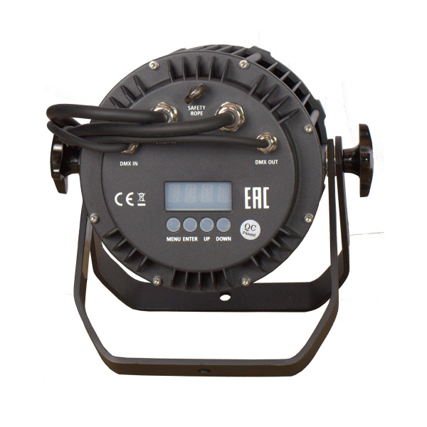 Всепогодный светодиодный архитектурный прожектор INVOLIGHT COBPAR100TW. Установка имеет металлический корпус черного цвета. Элементы управления: Mode, Setup, Up, Down ("Режим", "Установка" "Вверх", "Вниз",)