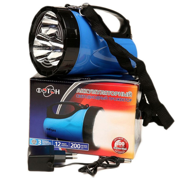 ● Аккумуляторный светодиодный фонарь оснащен 3 светодиодами 0,5W, дающими мощный световой поток, достигающий 200 метров.