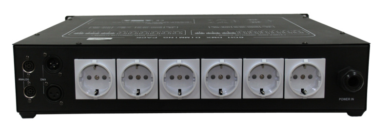 - Оборудование для управления устройствами работающими через DMX 512 - цифровой дроссельный диммер INVOLIGHT AD6. Имеет 6 каналов. Есть аналоговое подключение 0-10 В.