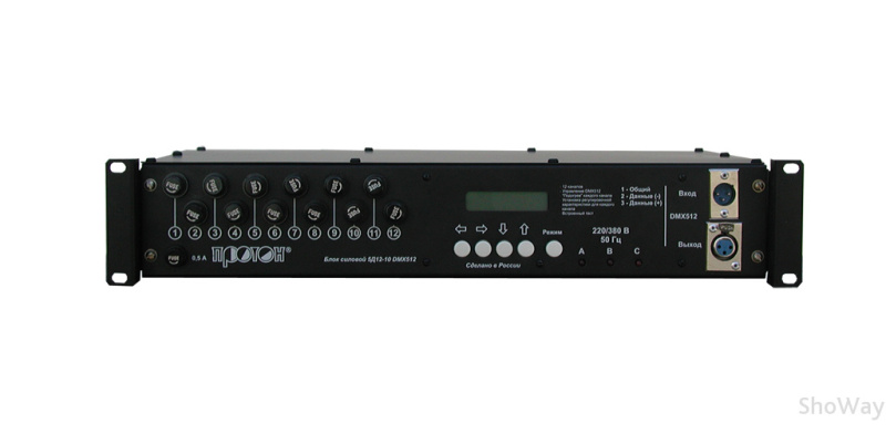 Модель 5Д12-10 DMX512 Напряжение 3 фазы, 380В Управление DMX512 Размер 483/290/88 мм Вес 7 кг Артикул 006808