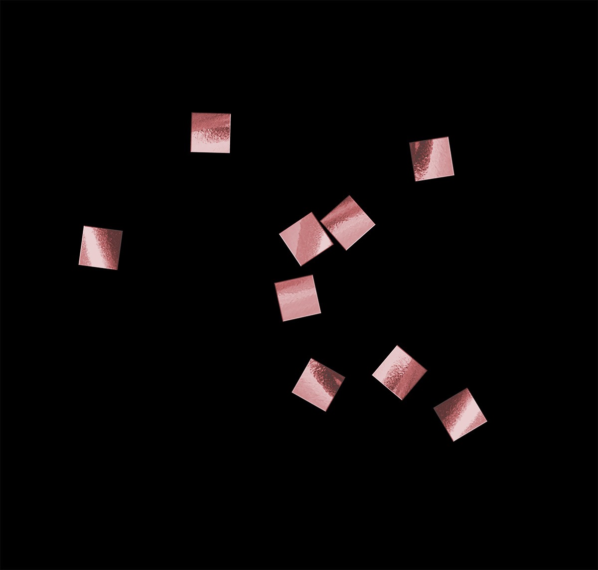 - Конфетти медленно парит в воздухе, изготовлено из ПЭТ пленки 12 мкм, окрашено с обеих сторон и имеет яркий блеск привлекающий внимание, в упаковке 50 грамм, яркие блестящие прямоугольники, цвет розовое золото