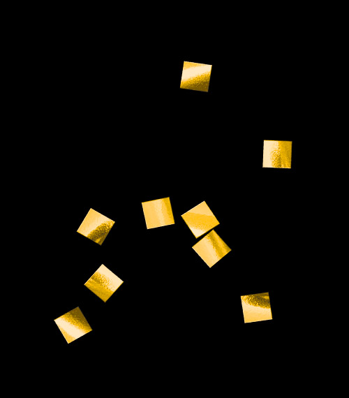 - Конфетти медленно парит в воздухе, изготовлено из ПЭТ пленки 12 мкм, окрашено с обеих сторон и имеет яркий блеск привлекающий внимание, в упаковке 50 грамм, яркие блестящие прямоугольники, цвет золото
