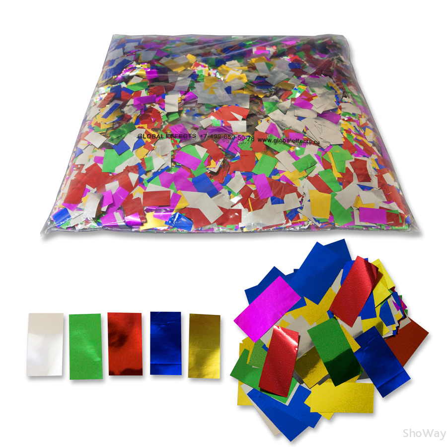 - Конфетти изготовлено из ПЭТ пленки 12 мкм, медленно парит в воздухе, окрашено с обеих сторон и имеет яркий блеск привлекающий внимание, в упаковке 1кг, разных цветов