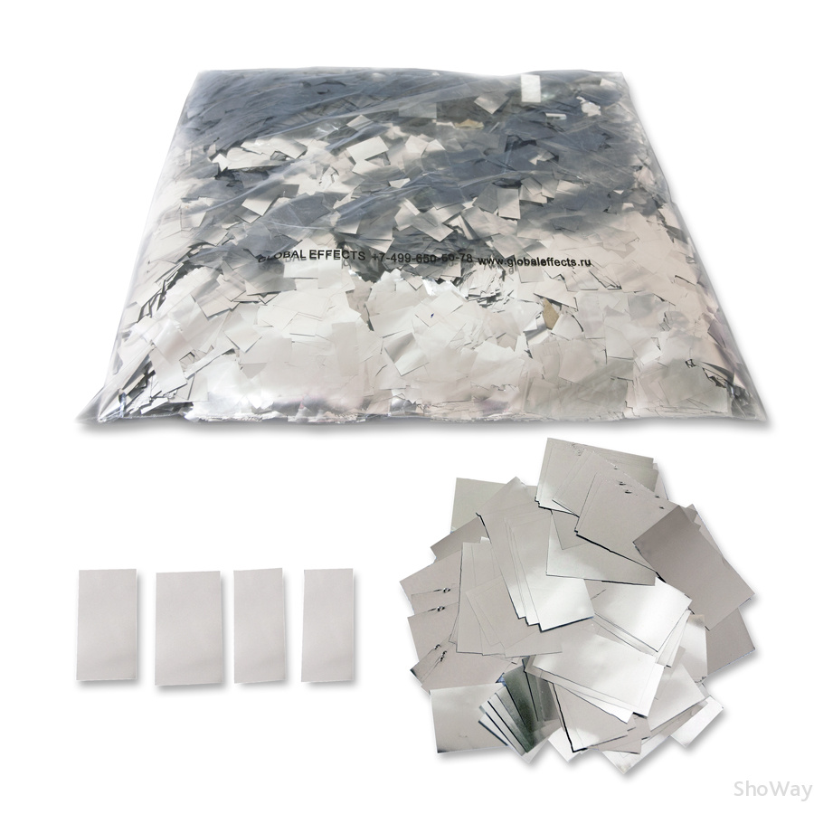 - Конфетти изготовлено из ПЭТ пленки 12 мкм, медленно парит в воздухе, окрашено с обеих сторон и имеет яркий блеск привлекающий внимание, в упаковке 1кг, цвет серебро