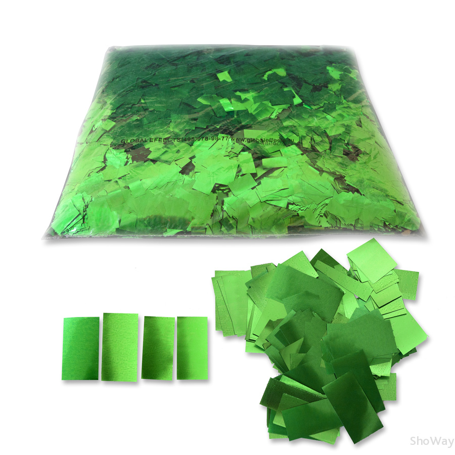- Конфетти изготовлено из ПЭТ пленки 12 мкм, медленно парит в воздухе, окрашено с обеих сторон и имеет яркий блеск привлекающий внимание, в упаковке 1кг, цвет зеленый