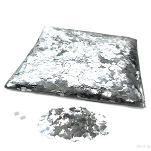 - Конфетти медленно парит в воздухе, изготовлено из ПЭТ пленки 12 мкм, окрашено с обеих сторон и имеет яркий блеск привлекающий внимание, в упаковке 1кг - 50 000 маленьких квадратиков, цвет серебро