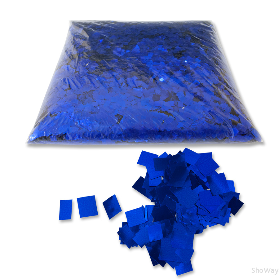 - Конфетти медленно парит в воздухе, изготовлено из ПЭТ пленки 12 мкм, окрашено с обеих сторон и имеет яркий блеск привлекающий внимание, в упаковке 1кг - 50 000 маленьких квадратиков, цвет синий