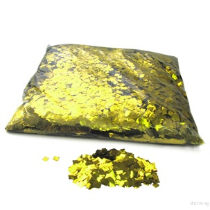 - Конфетти медленно парит в воздухе, изготовлено из ПЭТ пленки 12 мкм, окрашено с обеих сторон и имеет яркий блеск привлекающий внимание, в упаковке 1кг - 50 000 маленьких квадратиков, цвет золото