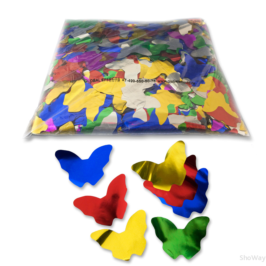 - Конфетти медленно парит в воздухе, изготовлено из ПЭТ пленки 12 мкм, окрашено с обеих сторон и имеет яркий блеск привлекающий внимание, в упаковке 1кг - 20 000 ярких бабочек, разных цветов