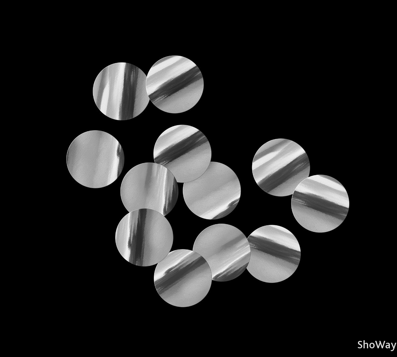 - Конфетти медленно парит в воздухе, изготовлено из ПЭТ пленки 12 мкм, окрашено с обеих сторон и имеет яркий блеск привлекающий внимание, в упаковке 1кг, яркие блестящие кружки, цвет серебро