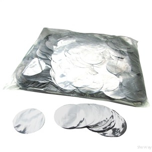 - Конфетти медленно парит в воздухе, изготовлено из ПЭТ пленки 12 мкм, окрашено с обеих сторон и имеет яркий блеск привлекающий внимание, в упаковке 1кг - 20 000 ярких блестящих кругов, цвет серебро