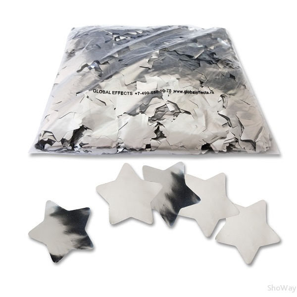 - Конфетти медленно парит в воздухе, изготовлено из ПЭТ пленки 12 мкм, окрашено с обеих сторон и имеет яркий блеск привлекающий внимание, в упаковке 1кг, цвет серебро