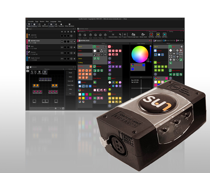 SUNLIGHT-BC, совершенно новый DMX-интерфейс на 512 каналов с технологией "SUT" ((Smart Upgrade Technology), которая дает возможность установить опцию подключения по Art-Net соединению.