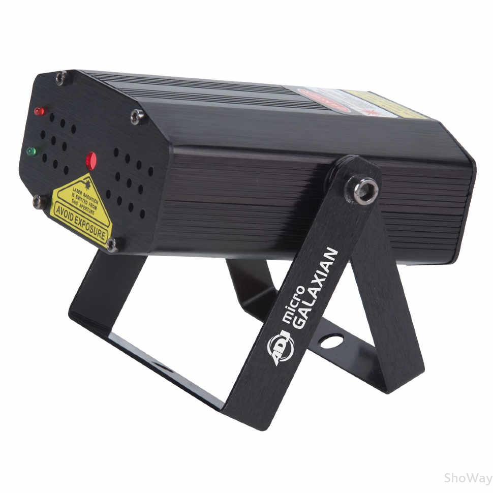 Модель American DJ Micro Galaxian отлично подойдет для ценителей мелких вещичек. Слово «Micro», присутствует в названии не случайно, устройство обладает сверхмалым весом и габаритами. Для удобства в использовании прилагается пульт Д/У, который работает от сети.