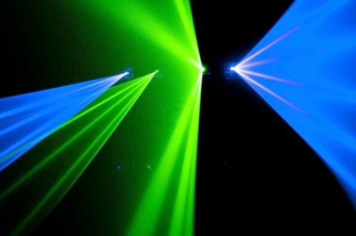 - Проектор Laserworld EL700GB, обладает высокой мощностью излучения с длиной волны 445 нм. Предусмотрено два варианта цвета луча: зеленый и синий и три различных режима свечения.