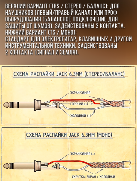 Экран: присутствует — защищает сигнал от электромагнитных наводок, что особенно важно в условиях сценических площадок и студий с большим количеством оборудования.