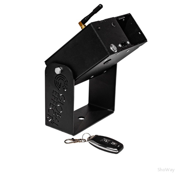 Удаленное управление с помощью пульта ДУ, который действует в радиусе 30м. На один пульт можно запрограммировать несколько пушек. Стандартный пульт ДУ поставляется в комплекте. При необходимости можно приобрести пульт дистанционного управления на 15 каналов. Дальность управления - до 500 метров.