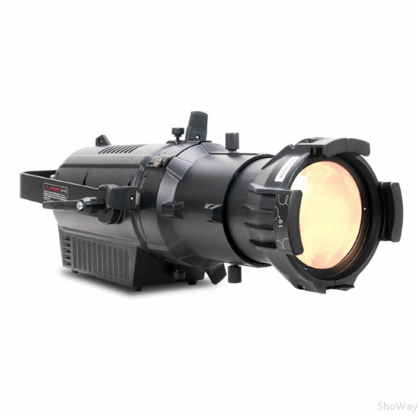 WW Profile HP™ эллипсоидальный высокомощный светодиодный светильник 130W теплый белый> 91CRI 3 000K , 10 000+ люменов, угол луча 19 °, 26 °, 36 ° и 50 ° за счет сменных объективов (продается отдельно), 4 профилирующих шторки, держатель Гобо размера B (не входят в комплект) и опциональный IP65 с DMX-управлением держатель гобо (продается отдельно), ручная фокусировка, электронный строб, управляемый DMX, без мерцания ТВ и плёнка, регулируемая частота обновления и гамма-яркость, 5pin DMX и PowerCON TRUE1 входы / выходы, (4) кнопочная панель управления ЖК-дисплеем, встроенное торможение, тихое охлаждение вентилятора и универсальная автоматическая коммутация (100-240в).