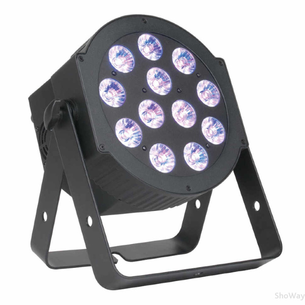 Устройство ADJ 12P HEX – это многофункциональный светодиодный прожектор с 12 светодиодами HEX 6-в-1 мощностью 12 Вт каждый. Благодаря углу луча 30˚ пользователи могут создавать широкое омывающее освещение с плавным смешиванием цветов с помощью 63 встроенных цветовых макросов с использованием красных, зеленых, синих, янтарных, белых и ультрафиолетовых светодиодов. Этот светодиодный прожектор отлично подходит не только для освещения сцен, но и – благодаря интеллектуальным разъемам питания и DMX (подана заявка на патент) – для подсветки мест проведения мероприятий.