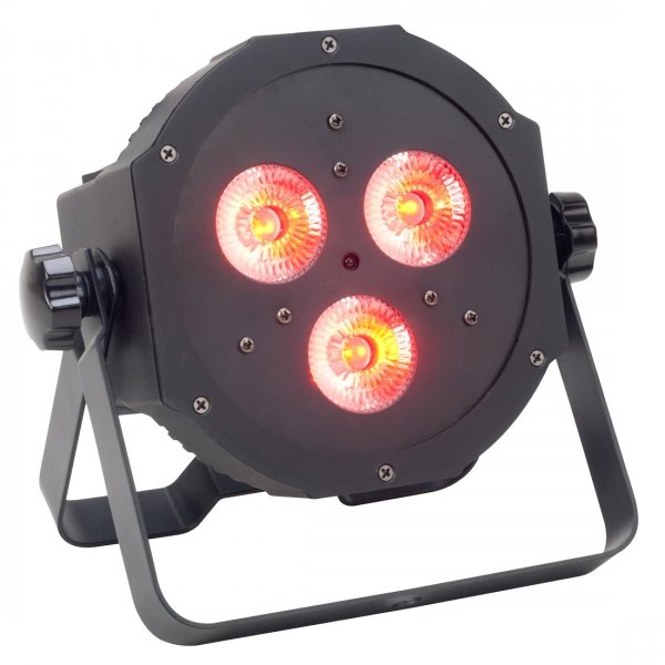 AMERICAN DJ MEGA QA PAR38 оснащен тремя яркими диодами с мощностью 5 Вт и плавным переходом цвета. Способен работать в автономном режиме. Удобно монтировать на стену или пол. Совместимость с беспроводным инфракрасным пультом дистанционного управления ADJ LED RC 2 до 30 футов/10 м (продается отдельно). Управляется по средствам DMX у которого 8 режимов работы. Так жесть звуковая активация, автоматический режим, мастер-ведомый.