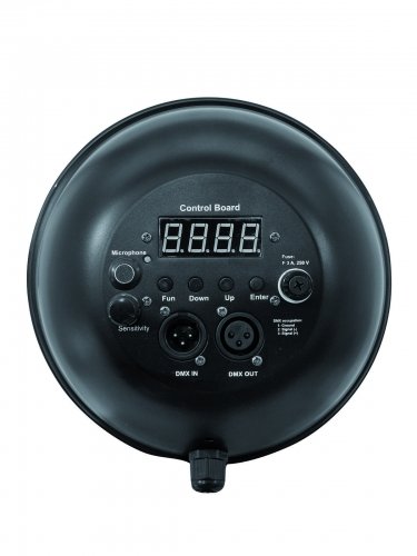 Светодиодный прожектор Eurolite LED PAR-64 RGB 36x3W Short black сделан в черном корпусе. Он оснащен 36 источниками света стандартной цветовой схемы RGB мощностью по 3 Вт каждый. Если кратко остановиться на функциях устройства, то стоит отметить эффект стробоскопа с регулировкой скорости от 1 до 10 вспышек в секунду, 8 встроенных программ, настройку яркости свечения и угол раскрытия луча 20 градусов. Вы можете выбрать из 4 доступных режимов работы наиболее подходящий в Вашей ситуации. Потребляемая мощность прожектора составляет 150 Вт.