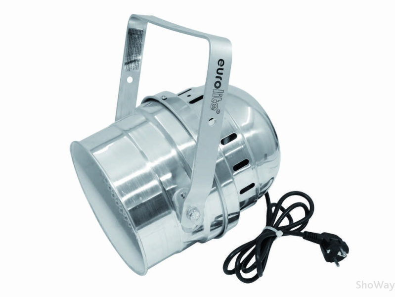 - Установка для концертных площадок прожектор Eurolite LED PAR-64 short, 10 mm, RGB LED, silver. Модель имеет яркие диоды 183 штук. Управляется по средствам DMX, который имеет один режим - 5 канальный. Master-slave, auto, Sound Activate.