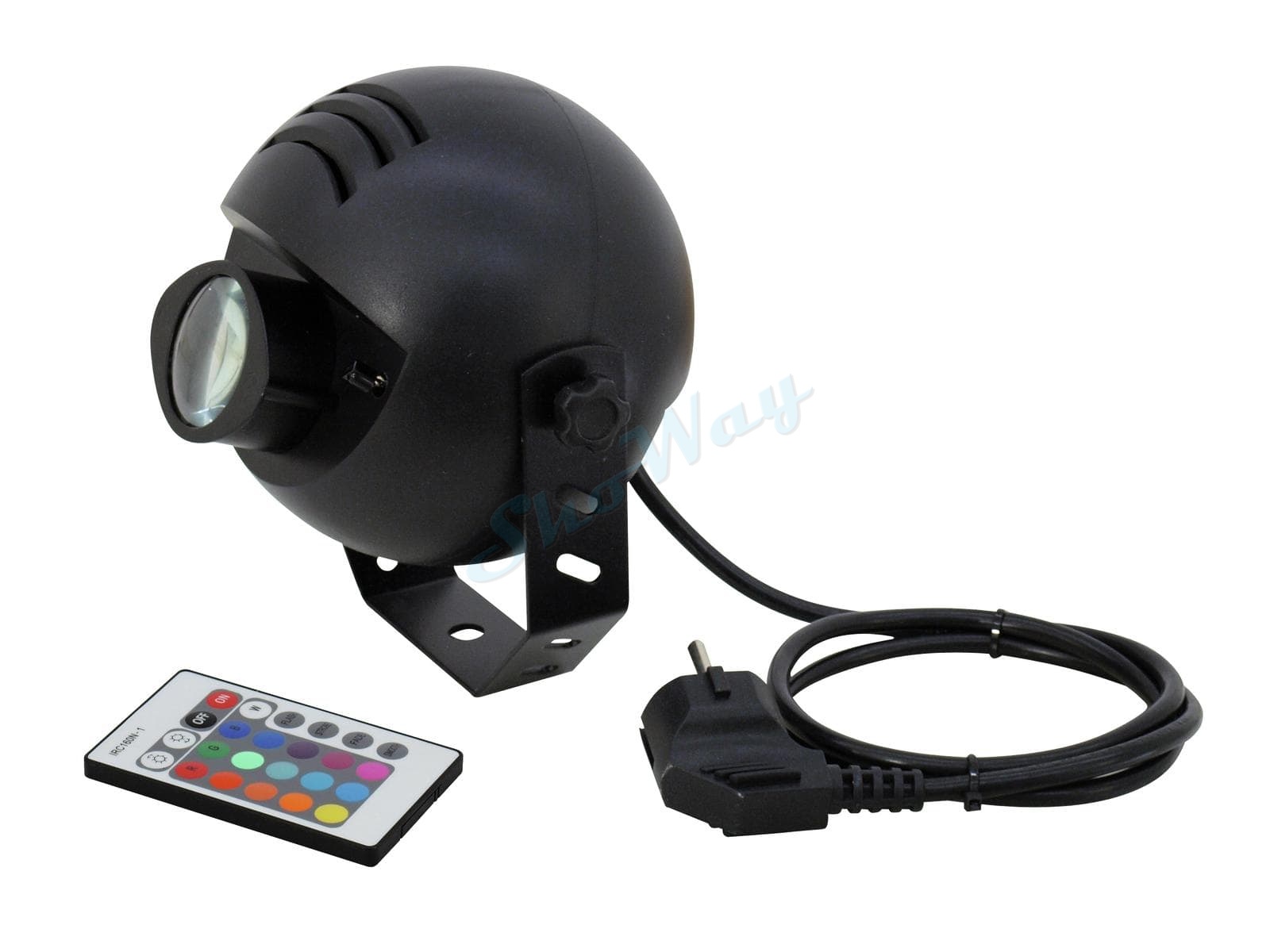 Светодиодный прожектор точечного света Eurolite LED PST-9 TCL IR spot. Управление с помощью инфракрасного пульта дистанционного управления. Инфракрасный пульт дистанционного управления в формате кредитной карточки входит в комплект поставки. Кабель длиной 1,3 м с разъемами Jack 3,5 мм для соединения приборов в цепь входит в комплект поставки.