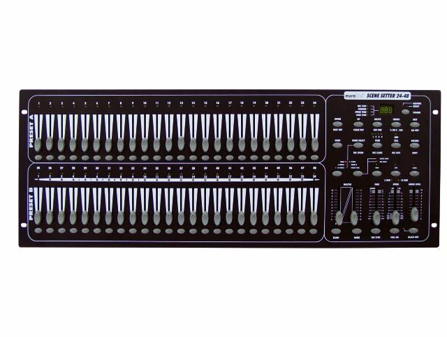 - EUROLITE DMX Scene Setter 24/48 DMX контроллер для управления световыми приборами. 48 управляемых каналов. Есть функция Blackout. Звуковая анимация с помощью встроенного микрофона