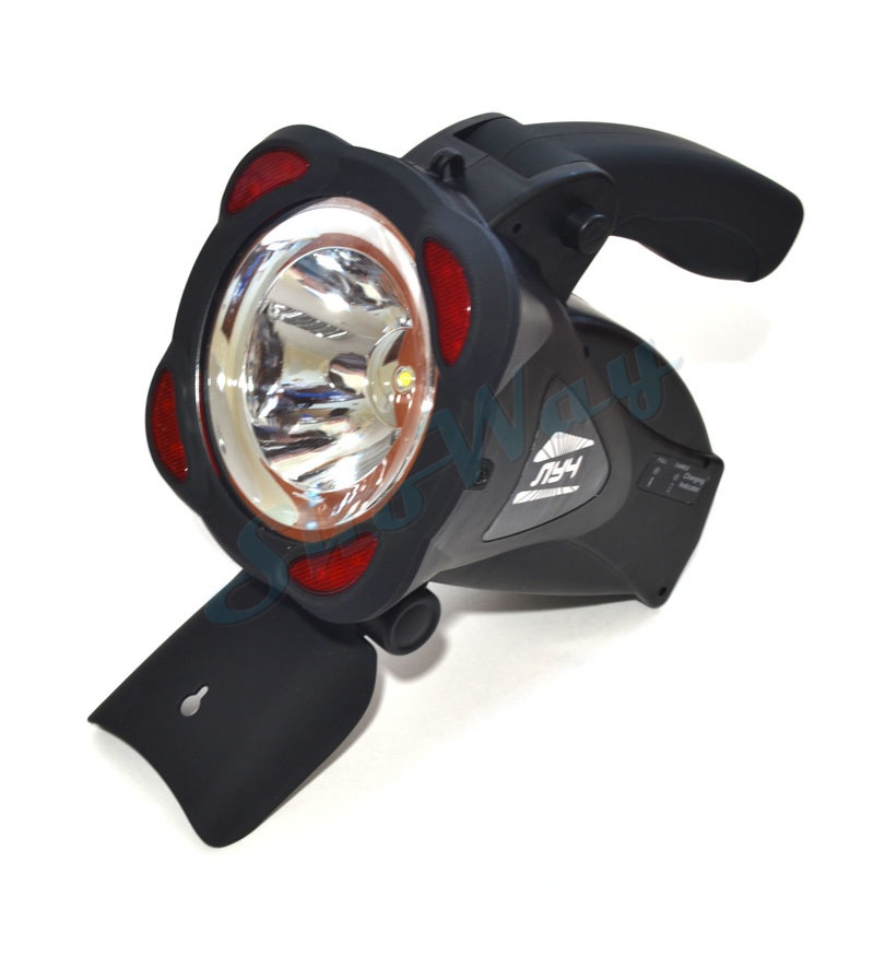 ● Этот оригинальный аккумуляторный фонарь в основном режиме работы использует для освещения сверхъяркий светодиод мощностью 3 Ватта. При выборе второго режима включаются восемь ярких светодиодов, расположенные по углам и прикрытые красными пластиковыми пластинами. Благодаря этому во втором режиме фонарь можно использовать как аварийный или габаритный. В зависимости от выбранного режима, автономное время работы фонаря составит от 4 до 18 часов.