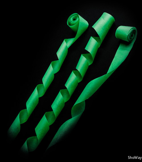 - Бумажный темно-зеленый серпантин в упаковках (24 шт.). Размер 2см х 10м. Пожаробезопасный, цена за упаковку