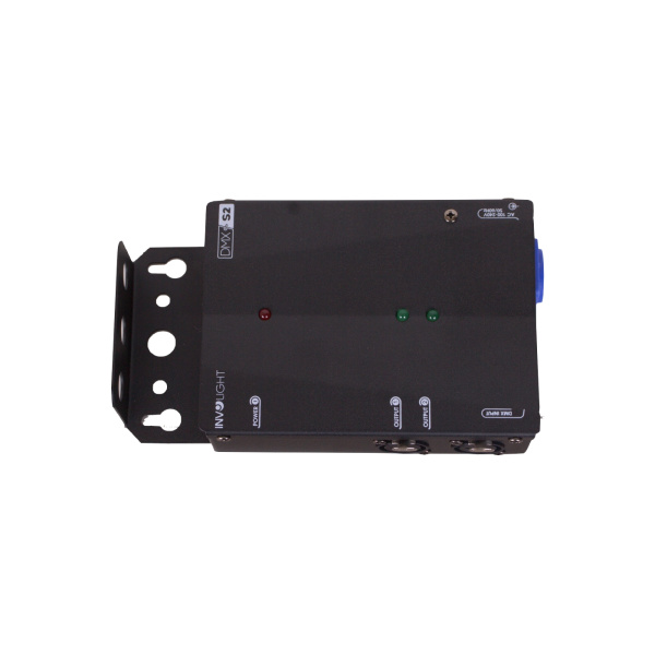 - DMX-сплиттер "DMXS2" имеет один вход и 2 выхода. Для подключения на каждый канал предлагается трех-контактный XLR разъём, который служит в качестве DMX-выхода. Каждый DMX-выход имеет независимый трансформатор.
