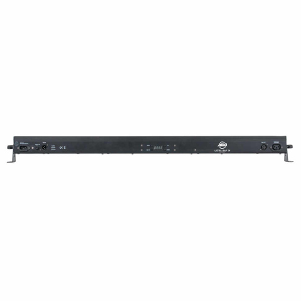 Установка для световых шоу - светодиодная панель ADJ ULTRA BAR 9. Модель типа штанги, имеет в основе 9 диодов цветовой гаммы: красный, зелёный, синий. Для удобства навигации по настройкам предусмотрено 4 кнопочное меню.