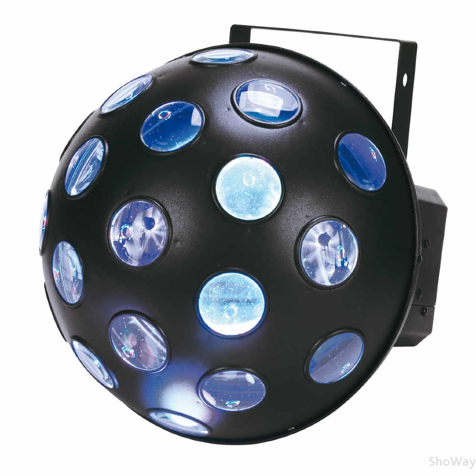 Осветительный прибор American DJ LED Quest имеет 19 линз, освещающих помещение широкими лучами цветов RGB, угол луча составляет 130 градусов, светодиоды имеют длительный срок службы, составляющий не менее 50 000 часов.