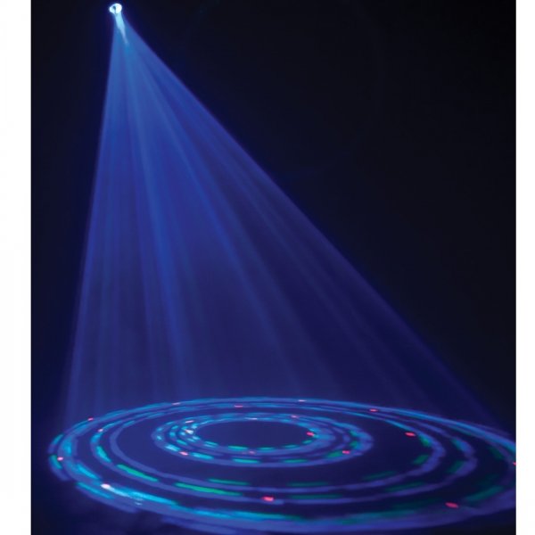 Цветомузыка American DJ Tri Gem LED способна выдавать более 20-и лучей с различным свечением одновременно, этого вполне хватает для создания обстановки в стиле «диско». Ну а используя дым-машину, можно устроить настоящее лазерное шоу у себя дома. Главными преимуществами такого устройства, является простая конструкция и низкая цена.
