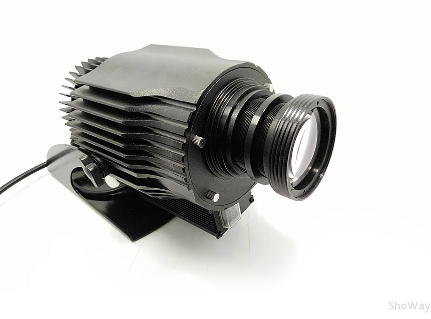 Проектор поддерживает использование гобо-слайдов из закалённого стекла для создания уникальных изображений. Регулируемая яркость и энергопотребление делают его гибким и позволяют использовать при ограниченной мощности электросети или работе от аккумулятора. Эта функция может быть активирована автоматически, привлекая внимание к проекции и экономя электроэнергию.