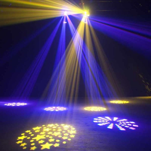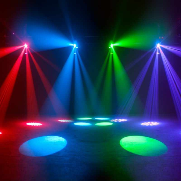 - Светодиодный сканер ADJ Inno Roll HP, установка имеет 3 режима управления DMX / Звуковая активация / Авто.
