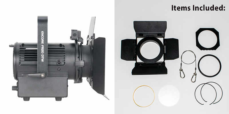 - ADJ Encore FR20 DTW театральный прожектор на светодиоде. Модель оснащена 2-дюймовыми линзами Френеля. Цвет свечения теплый белый.