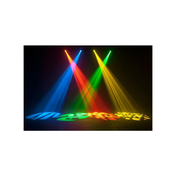 Включает 7 цветов и белый цвет, 7 или фиксированных гобо, а также прожектор и отдельные колеса цветов, обеспечивая чистое наслаждение светом благодаря своим динамичным лучам и смене цветов. Устройство имеет обратный режим панорамы и наклона, который позволяет при объединении голов назначать им противоположные действия.