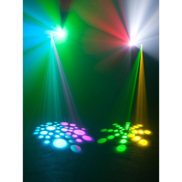 Также следует отметить наличие множества встроенных функций, которые позволят быстро и без проблем организовать любое мероприятие или даже световое шоу! В добавок, аппарат имеет встроенный диммер, позволяющий быстро произвести корректировку яркости света. Ну и новинкой модели стал встроенный стробоскоп, который позволяет мигать красками с большой скоростью.