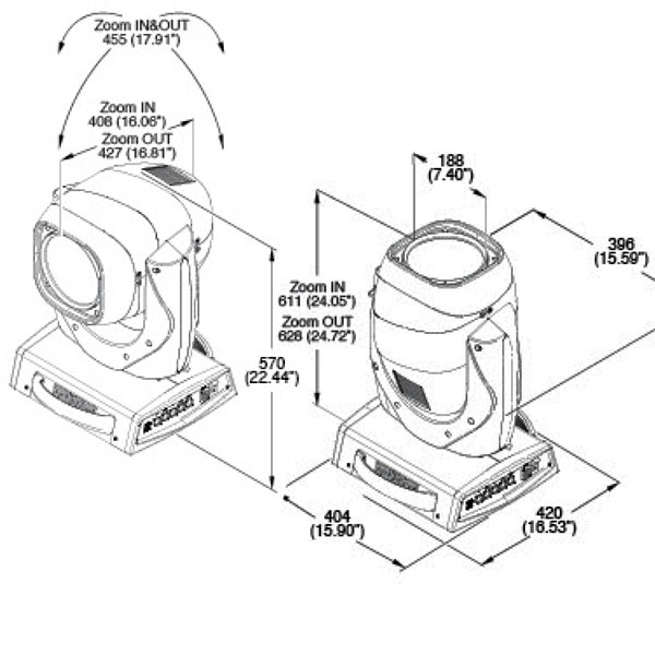 Характеристики этого светового прибора поражают воображение: очень яркая 470-ти Вт лампа прожектора с большим диапазоном светового пучка в режиме SPOT от 4° до 50°, острыми, «как бритва», краями луча, оптимизированным для фокусировки вращающихся и фиксированных гобо двенадцатикратным зумом, плавными, быстрыми и очень тихими движениями. Луч света прибора регулируется от минимального угла раскрытия в 2.5° до очень большого и плотного пучка диаметром в 160 мм.
