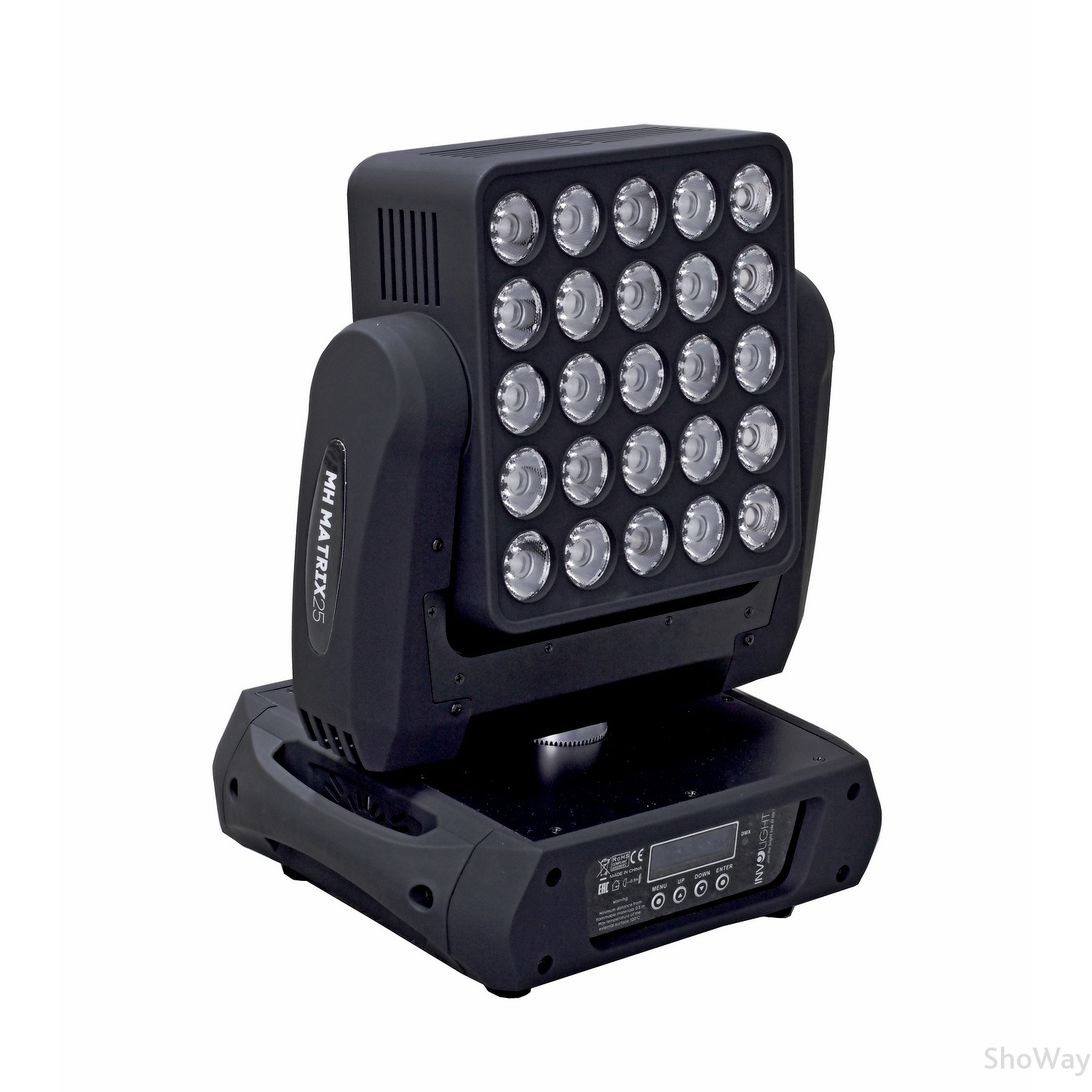 LED аппаратура для клубов и дискотек - вращающаяся голова INVOLIGHTMH MATRIX25 - имеет 25 ярких диодов RGBW. Общая потребляемая мощность 400 Вт. Луч Wash ( размытие) угол раскрытия 7 градусов. Матричная панель позволяет управлять каждым из 25 LED-сегментов.