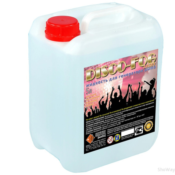 - Disco Fog Light - жидкость для генераторов дыма на водной основе без запаха. Создаёт дым лёгкую дымку и быстро развеивается. Продаётся в канистрах 5 литров.