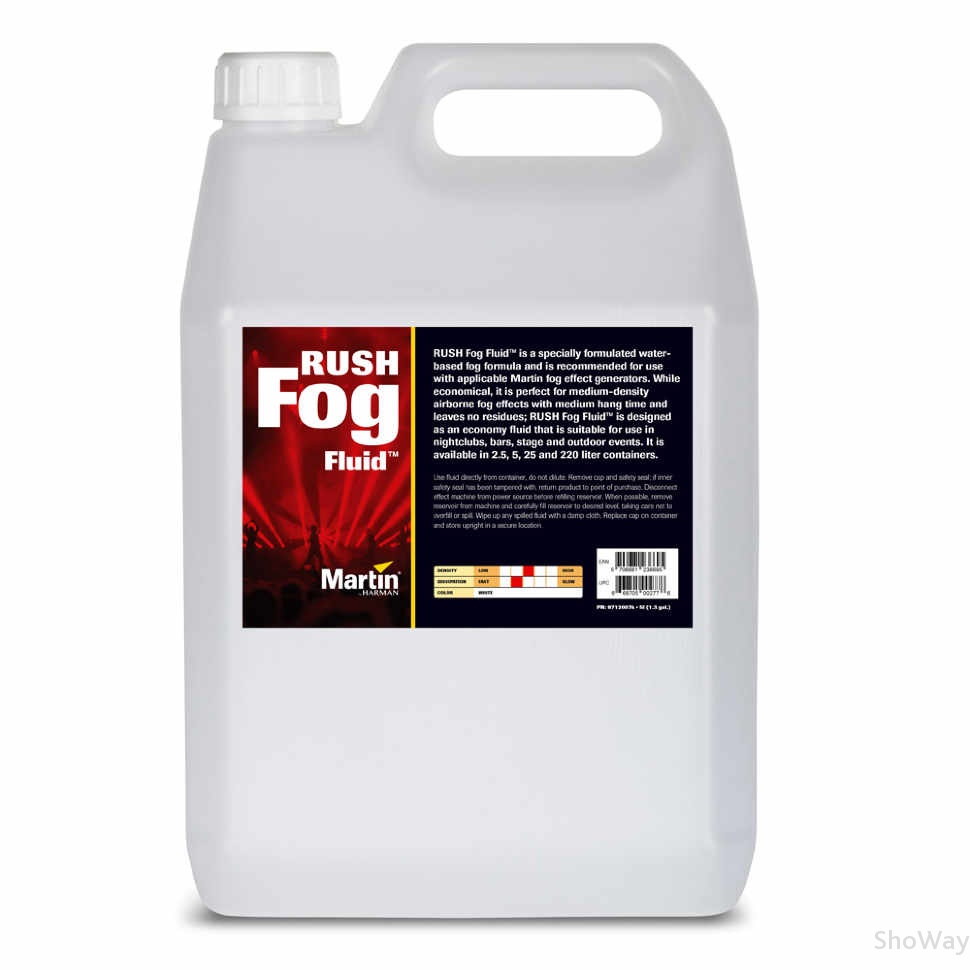 - Жидкость для генераторов дыма MARTIN RUSH FOG FLUID обладает средней плотностью и временем рассеивания, продаётся в канистрах 5 литров.