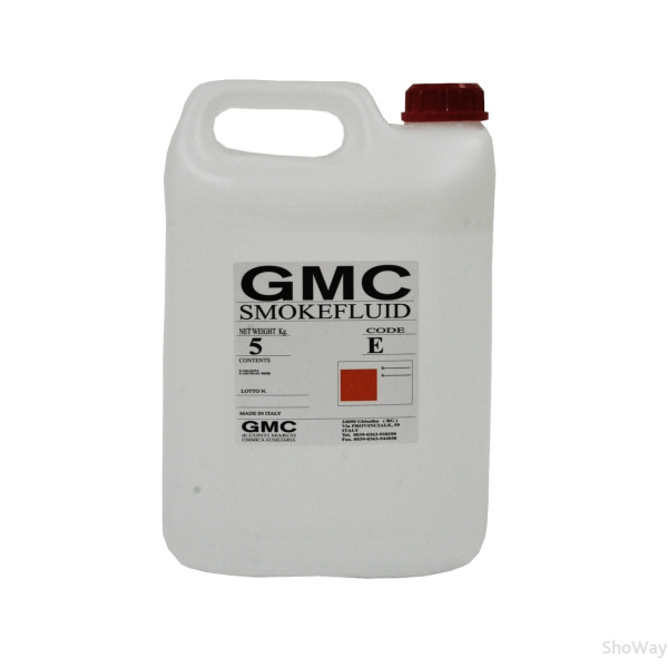 Модель SmokeFluid/E Ёмкость 5 литров Степень рассевания средняя Артикул 006357 - GMC SmokeFluid/E - это жидкость для дымогенераторов средней густоты итальянского производства.