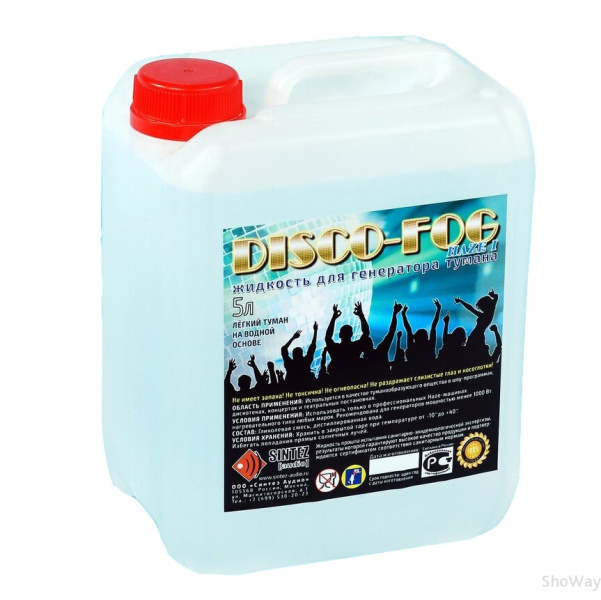 - Жидкость для генератора тумана Disco Fog Haze I создаёт лёгкий туман, идеально подходит для создания условий для проведения световых и лазерных шоу с эффектом преломления световых лучей с длительным рассеиванием созданного тумана.