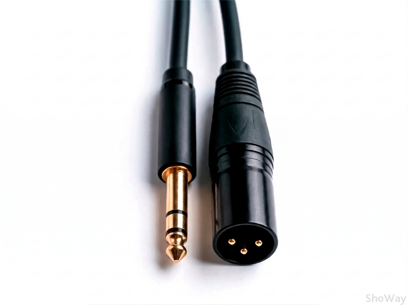 Разъёмы: сторона 1 — Jack 6,3 мм TRS (стерео), штекер («папа»); сторона 2 — XLR 3‑pin, штекер («папа»).