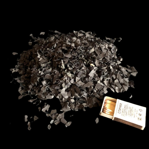 Изготовлен из тончайшей бумаги тишью. Имеет сертификат пожаробезопасности. Не поддерживает огонь. Используйте в театральных и кинопостановках для имитации пепла, как падающего, так и лежащего. Соблюдайте осторожность при выдуве: не направляйте в лицо: пепел легок, поэтому есть опасность попадания в легкие при близком контакте.