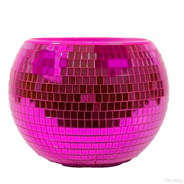 Зеркальное кашпо настольное в форме диско-шара, 20 см пурпурное